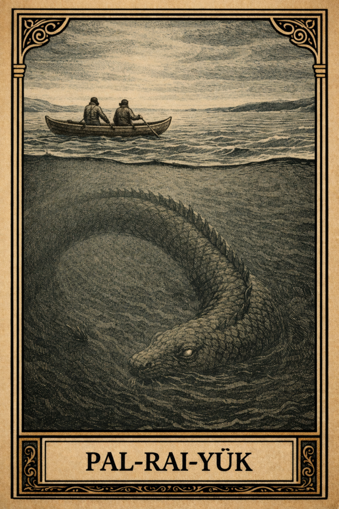 Pal-Rai-Yûk appears in traditions from St. Lawrence Island and the surrounding Bering Sea. Accounts describe a powerful sea predator that threatens boats near shore. Early ethnographic records treat it as part of a dangerous coastal world. The creature belongs to stories shaped by ice, surf, and survival. Later sources often group it with Tizheruk, blending local sea-monster traditions into a broader serpentine image.