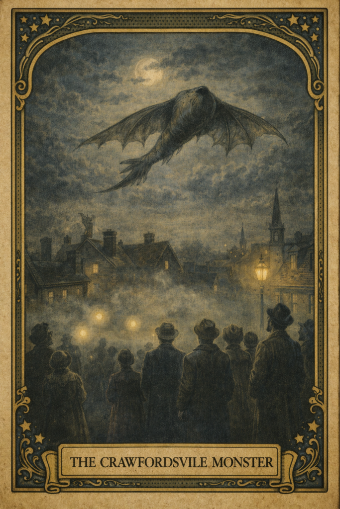 The creature reportedly returned the next evening over Crawfordsville. Hundreds watched it flap and hover above the town. Newspapers spread the story, and the legend took lasting hold in Indiana.