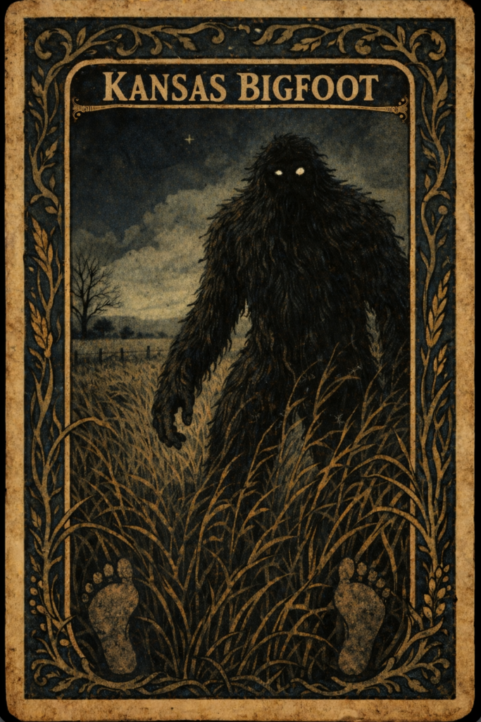 Kansas Bigfoot reports form a statewide wildman tradition. BFRO lists fifty-one Kansas reports across many counties. Those listings include Douglas, Jackson, Kingman, and Cherokee counties. Witnesses describe hairy figures, large tracks, and sudden roadside encounters.